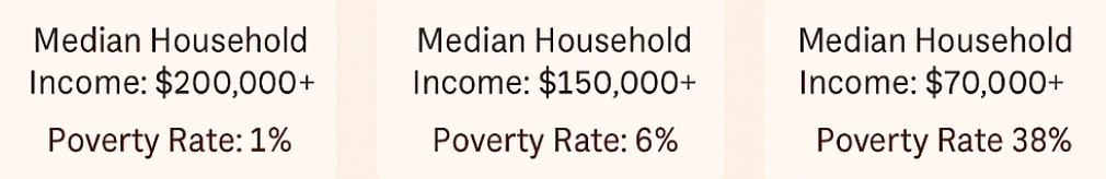 Allendale, with the greatest traffic and Children’s Lead Risk score (80.93), also boasts the highest poverty (38%), underscoring heightened exposure to several environmental risks in more underdeveloped areas.