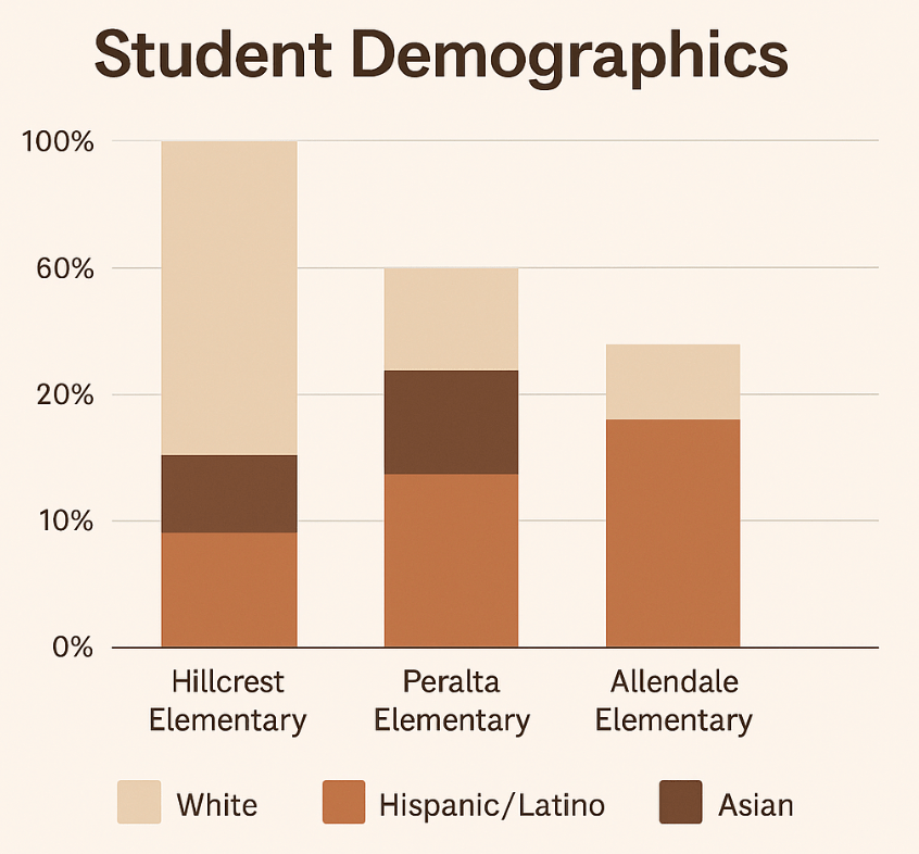 To demonstrate the relationship between children’s health risk, school ethnicity demographics, and poverty rate, we compared three elementary schools that have above 200 students from three distinguish areas of Oakland.
